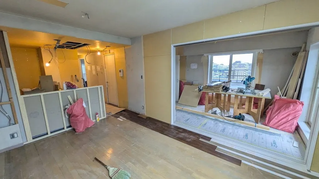 収納はたくさんある部屋でしたので、一部収納部分を解体し、LDKへ作り変えることで対面キッチンにしました。
